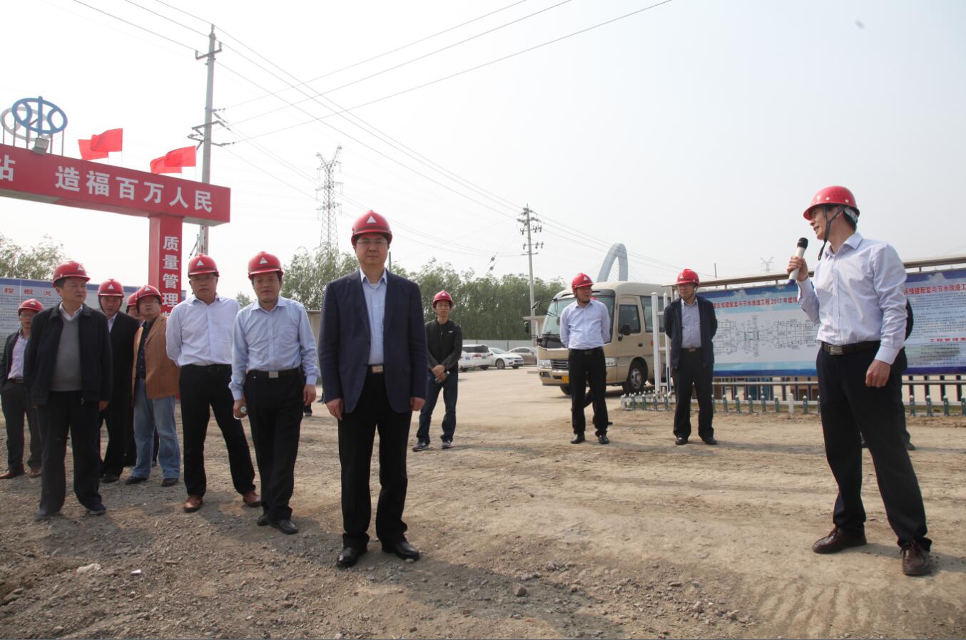 (图为视察东台新抽水站建设现场)